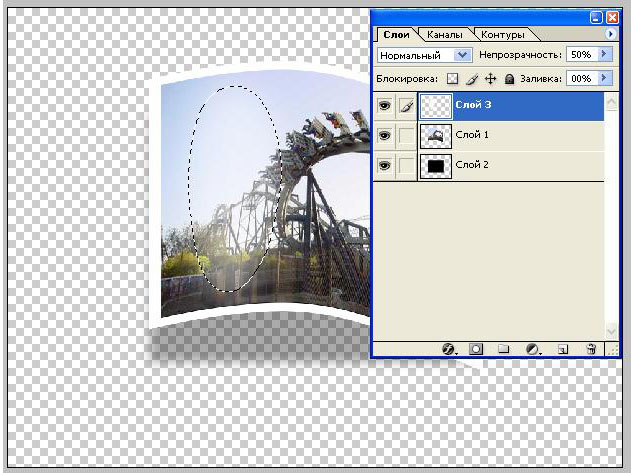 13. Инструментом Paint Bucket заливаем это выделение белым цветом. Снижаем прозрачность слоя до 50%. Снимаем выделение Ctrl+D
