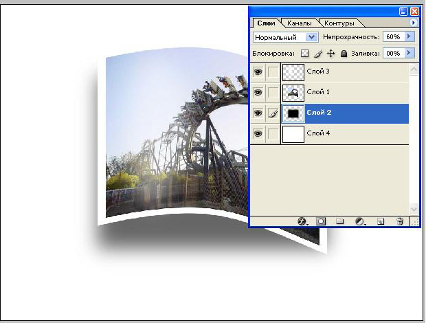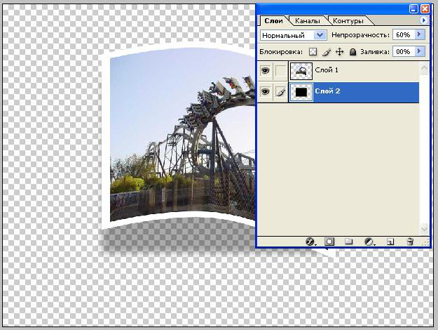 6. Теперь создадим слой с тенью. Делаем новый слой, опускаем его под слой с фотографией и инструментом Paint Bucket заливаем его черным цветом